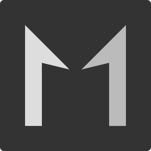 The logo features two upward vectors arranged to form the letter "M".